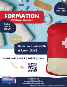🩺 Formation Assistant Sanitaire – Laon (02000) 📅 Du 01/05/2026 au 03/05/2026🏠 Formation en externat💰 Tarif : 150,00 € 🎯 Objectifs de la...